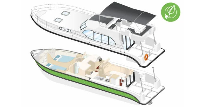 Francouzská společnost Nicols inovuje. Nyní uvedla na trh nový moderní plně elektrický hausbót Quattro Fly C Green.