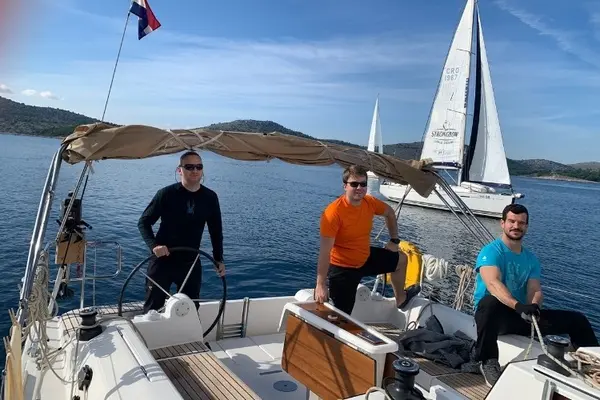 “Když jsme míjeli první točný bod začalo být  jasné, že míříme vstříc naší první opravdové nočce. Postupně moje nervozita rostla, přeci jen už zase docela slušně fouká, míříme mezi Kornati a polovina posádky je na moři první celý den. Po první hodince plavby za svitu měsíce ze mě ale postupně začal opadat stres a s pomocí místních jsme zvládli i obávané přístavní manévry😊 Když jsem si v druhý den odnášel pln překvapení, úžasných dojmů a skoro slz za neskutečného potlesku cenu pro odvážné nováčky, věděl jsem, že dnešní etapu za žádných okolností nevzdáme a že už rozhodně nechci být poslední!”  Michal (Sveti Ivan)