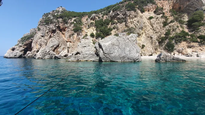 Um ehrlich zu sein, weiß ich nicht, wie sie heißt, wenn sie überhaupt einen Namen hat. Es ist einfach eine wunderschöne Bucht an der Westküste von Korfu, die aussieht, als wäre sie von einem gefallenen Meteoriten geschaffen worden. Nur die wirklich Abenteuerlustigen können hier ankern, aber ich empfehle, an der Küste zu ankern, und mit Küste meine ich einen der Felsen im Meer oder die Felsen, die die Bucht säumen. Hier ist es ruhig, und Sie sind vor dem Wind geschützt. Und schnorcheln Sie hier unbedingt. Es gibt eine Fülle von kleineren und größeren Fischen. Wenn Sie diese Bucht nicht finden können, versuchen Sie es in einer anderen, es gibt viele in Griechenland :)