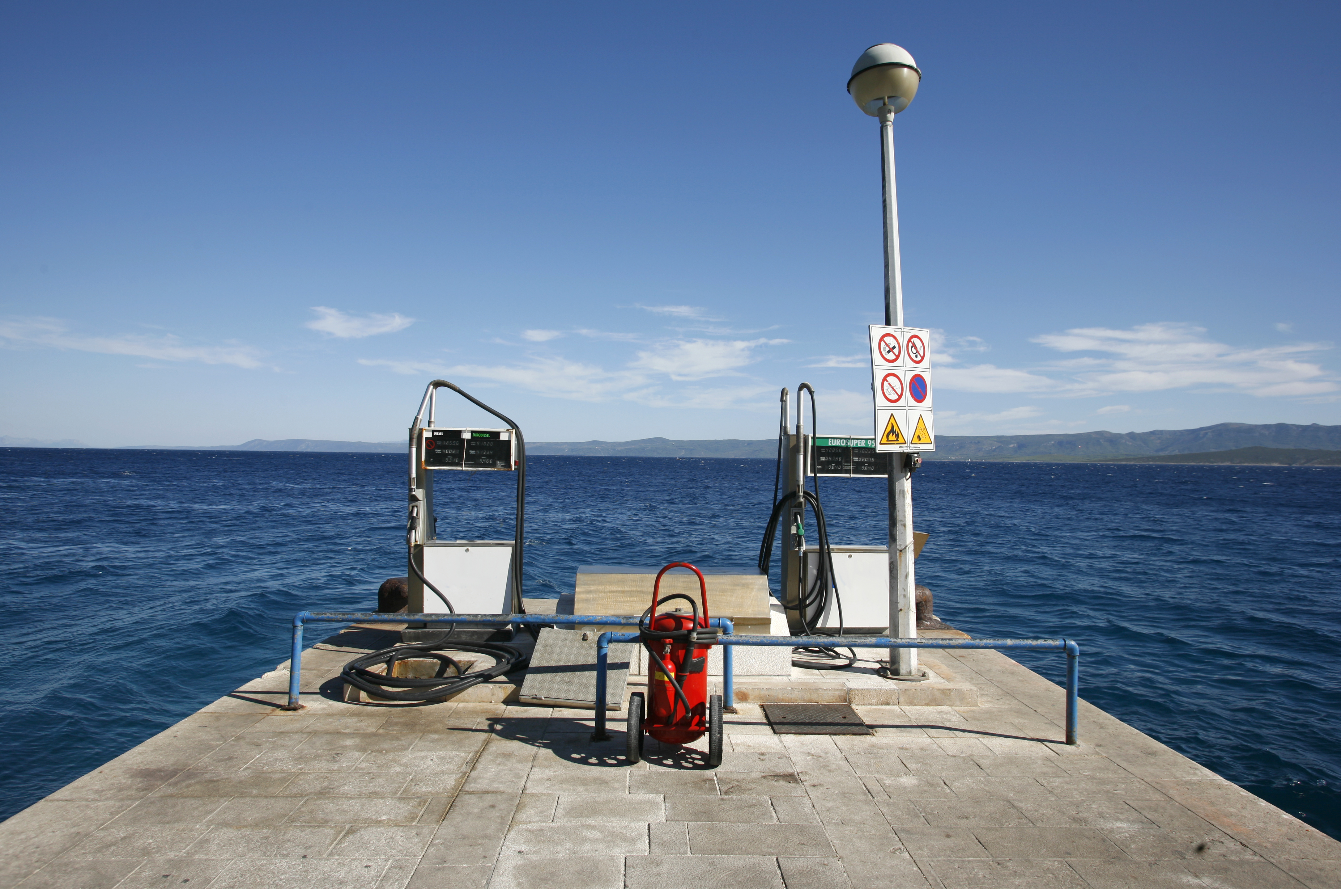- A staff member takes the pump nozzle from a stand that has its display facing away from the sea — particularly at refuelling stations for boats and cars (Sukošan and Šibenik).