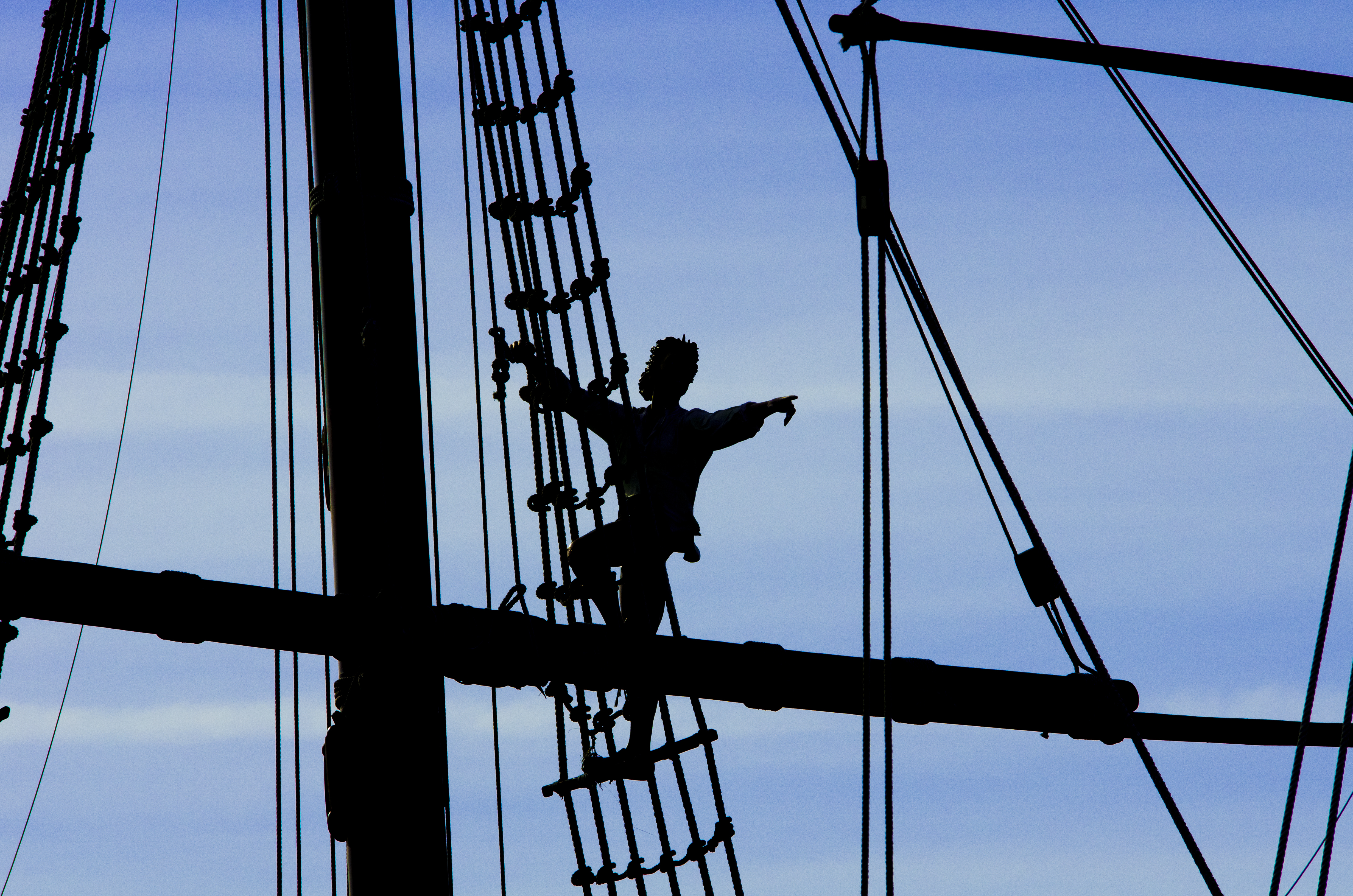 マスト・ロープ梯子と マ スト頂上からのロープ