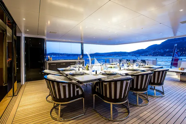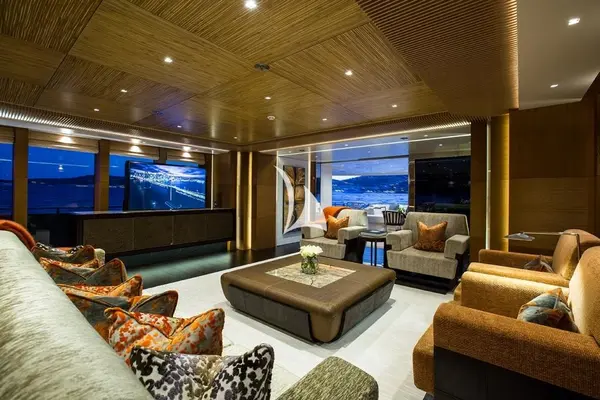 Iate premiado com áreas de estar espaçosas e comodidades de luxo.