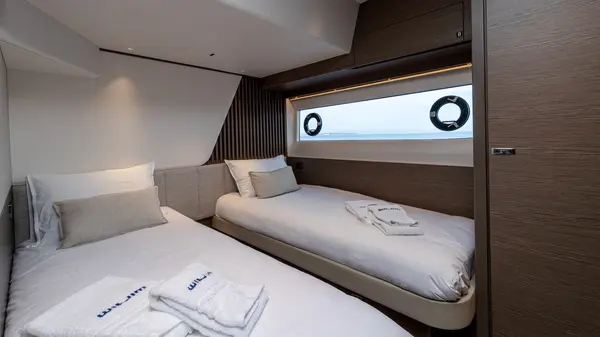 Oferece um salão espaçoso com uma área de refeições, um bar e uma convidativa zona de televisão, garantindo o máximo conforto a bordo.