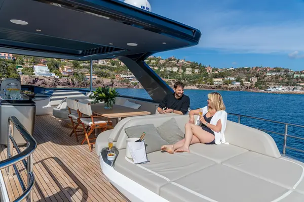 O seu espaçoso flybridge é uma das partes mais populares do iate.