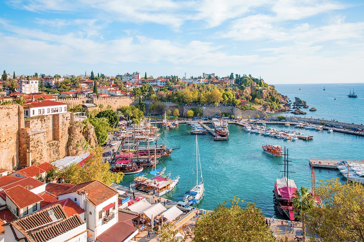 Centrul așa-numitei riviere turcești, prea plin de viață pentru unii, se află pe coasta mediteraneană. Stațiuni, hoteluri, plaje perfecte, baruri, restaurante. Dar și cartierul vechi al lui Kaleici, vechile fortificații cu porți romane. În Antalya toată lumea va găsi ceva pentru toată lumea, chiar și iubitorii de munte: munții înalți, parțial verzi, pot fi văzuți din multe locuri din oraș, iar pantele lor abrupte cad practic direct în mare. Panoramă uimitoare. Priveliștea de pe cealaltă parte este cu siguranță grozavă - munții chemează pentru o drumeție pe uscat de o zi.