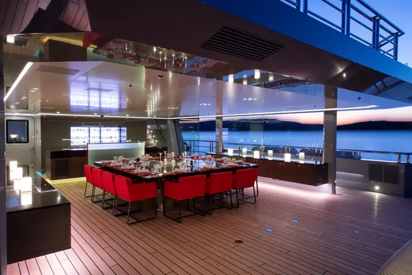 Punțile sale mari dispun de numeroase zone de luat masa, precum și de saloane exterioare confortabile,